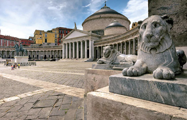 • Piazza del PlebiscitoÉ a praça principal, símbolo da cidade. Se encontra no final da Rua Toledo, próxima ao bairro espanhol e ao Maschio Angoino (outros lugares que merecem uma visita!). Uma praça gigante, próxima ao mar, e em frente à qual se abrem o Palazzo Reale, com as estátuas dos 8 reis mais importantes da cidade, e a Basilica de San Francesco de Paola. Próximo a praça, temos também dois lugares imperdíveis: o Caffé Gambrinus, e o Caffé del Professore, onde tomar o típico café napolitano: uma delícia!